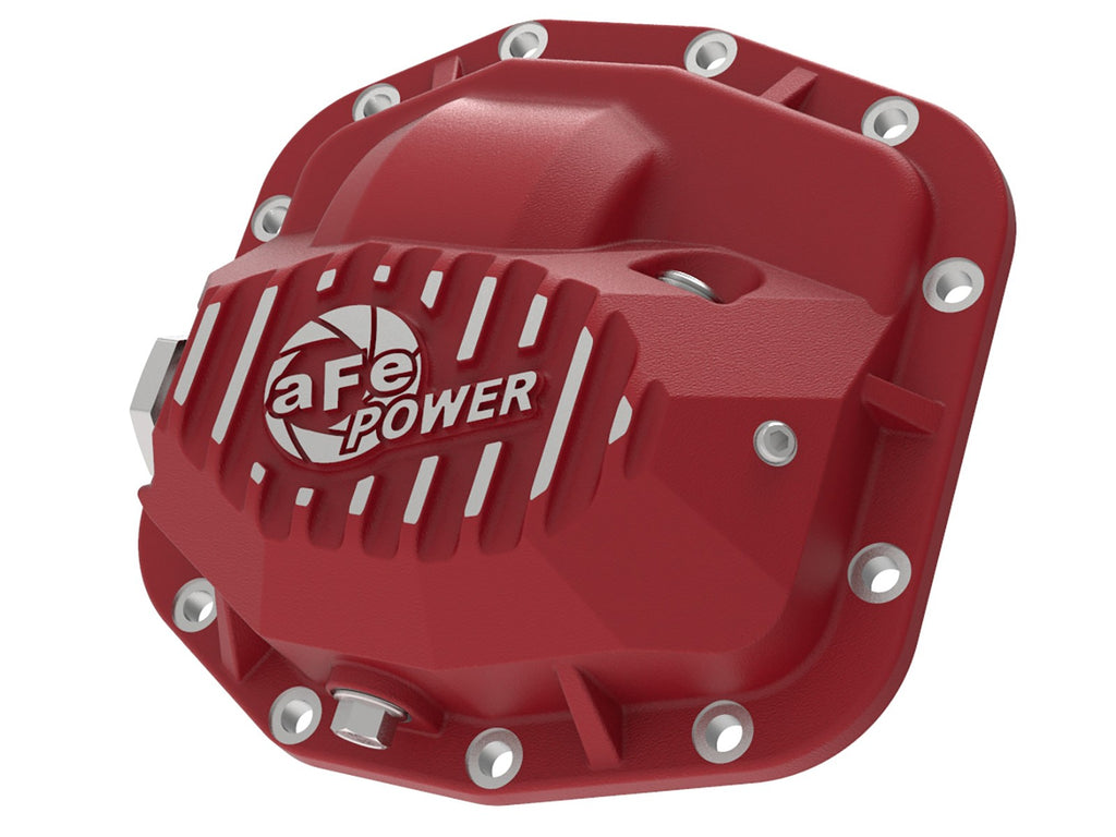 aFe Power's new front differential cover brings performance engineering to the protection of your axle's differential. This differential cover is constructed out of durable cast aluminum with reinforced ribs for maximum strength. This cover comes with all necessary hardware for easy installation. Pro Series differential covers include an oil level sight glass and magnetic deep reach fill plug. This cover is finished with red powder-coating and machined fins for a distinctive look.