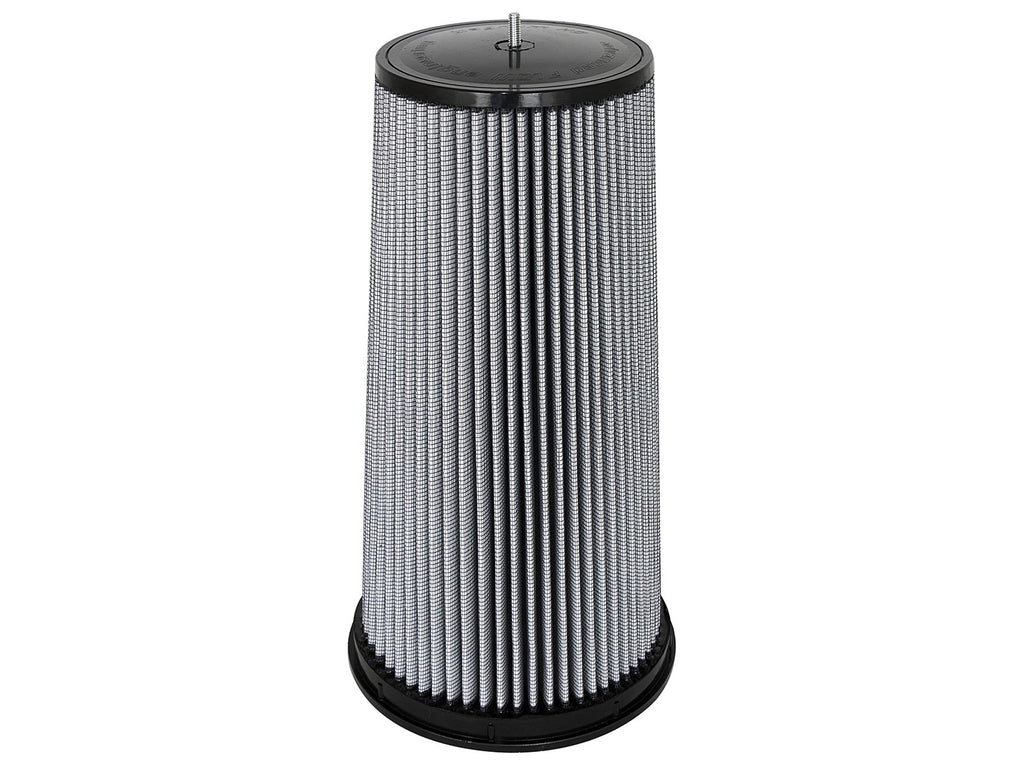 With three layers of progressively finer mesh synthetic media between 100% polyurethane top and base, the aFe Pro Dry S heavy duty "oil-free" conical performance filter provides excellent airflow for maximum horsepower and torque for RV motor homes with pusher diesel motors. Washable and reusable for multiple cleanings. The tall, open, evenly spaced pleats provide excellent dust holding capacity for longer service cycle between cleanings. The Pro Dry S air filter has a filtration efficiency of 99.2%.