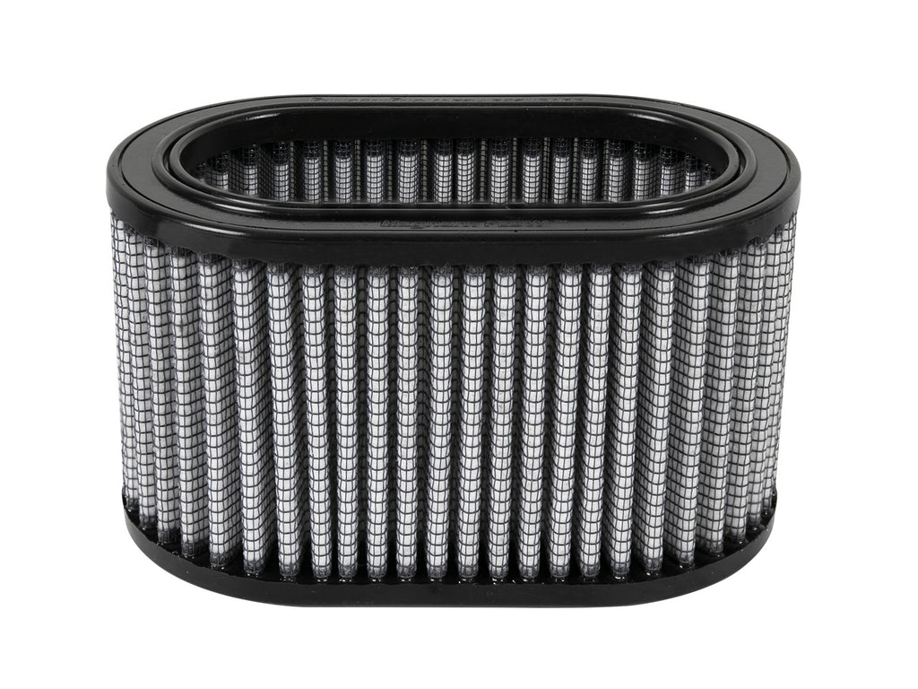 With three layers of progressively finer mesh synthetic media between 100% polyurethane top and base, the aFe Pro Dry S heavy duty "oil-free" conical performance filter provides excellent airflow for maximum horsepower and torque for RV motor homes with pusher diesel motors. Washable and reusable for multiple cleanings. The tall, open, evenly spaced pleats provide excellent dust holding capacity for longer service cycle between cleanings. The Pro Dry S air filter has a filtration efficiency of 99.2%.