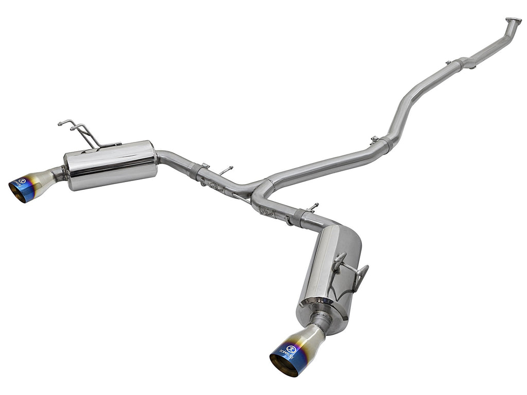 aFe is proud to introduce an all new Takeda Dual Cat-Back Exhaust System for the Honda Civic Sedan EX/EX-L/Touring with the I4-1.5L turbo engine. This cat-back exhaust system utilizes 2-1/2" to 2-1/4" stainless steel tubing and incorporates dual, high-flow mufflers to improve performance across the power band while maintaining an aggressive sound. To finish off the exhaust, welded-on dual 3-1/2" diameter 304 stainless steel blue flame tips are included. This system includes high quality clamps for a secure hassle-free installation.