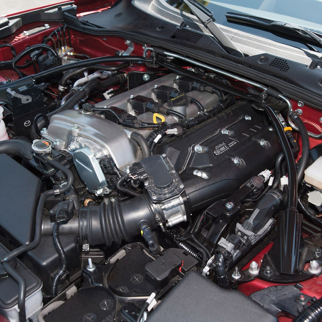 The Edelbrock Stage 1 Street Supercharger system #15540 (No Tuner) for 2016-18 Mazda MX-5 Miata increases the performance of your SKYACTIV -G 2.0L engine to 198 horsepower and 182 ft-lbs of torque at the rear wheels. Its unique design allows for maximum flow, while retaining great daily driving characteristics. It has been designed from the ground-up and utilizes the Eaton R900 TVS rotor assembly for maximum efficiency in a compact package. To cool the incoming air, is an air-to-water intercooler and heat exchanger. All these features help the Edelbrock deliver dramatically improved performance with a smooth linear power curve. Lastly, the supercharger assembly is finished with a durable black powder coating for a unique look that will let everybody know your car is Edelbrock powered! Supercharger systems sold without tuners are only emissions legal when used with the correct Edelbrock program. For safety, the Edelbrock-supplied program will retain the factory vehicle speed limiter setting. Increases horsepower by 41% and torque by 36% over stock. Unique compact design fits under the stock hood. Supplied with preformed hoses for ease of installation - no trimming needed. Bolt-on installation - everything fits right out of the box with no cutting or welding needed. Features Eaton Gen VI R900 TVS rotor assembly; the same high-quality rotors used by many OEM manufacturers. Self-contained oil system with 100,000 mile service interval (no drilling or plumbing required). Integrated bypass valve for minimal decrease in fuel economy. Available with a FREE 3-year 36,000 mile powertrain warranty. Supercharger systems sold without tuners are only emissions legal when used with the correct Edelbrock program.