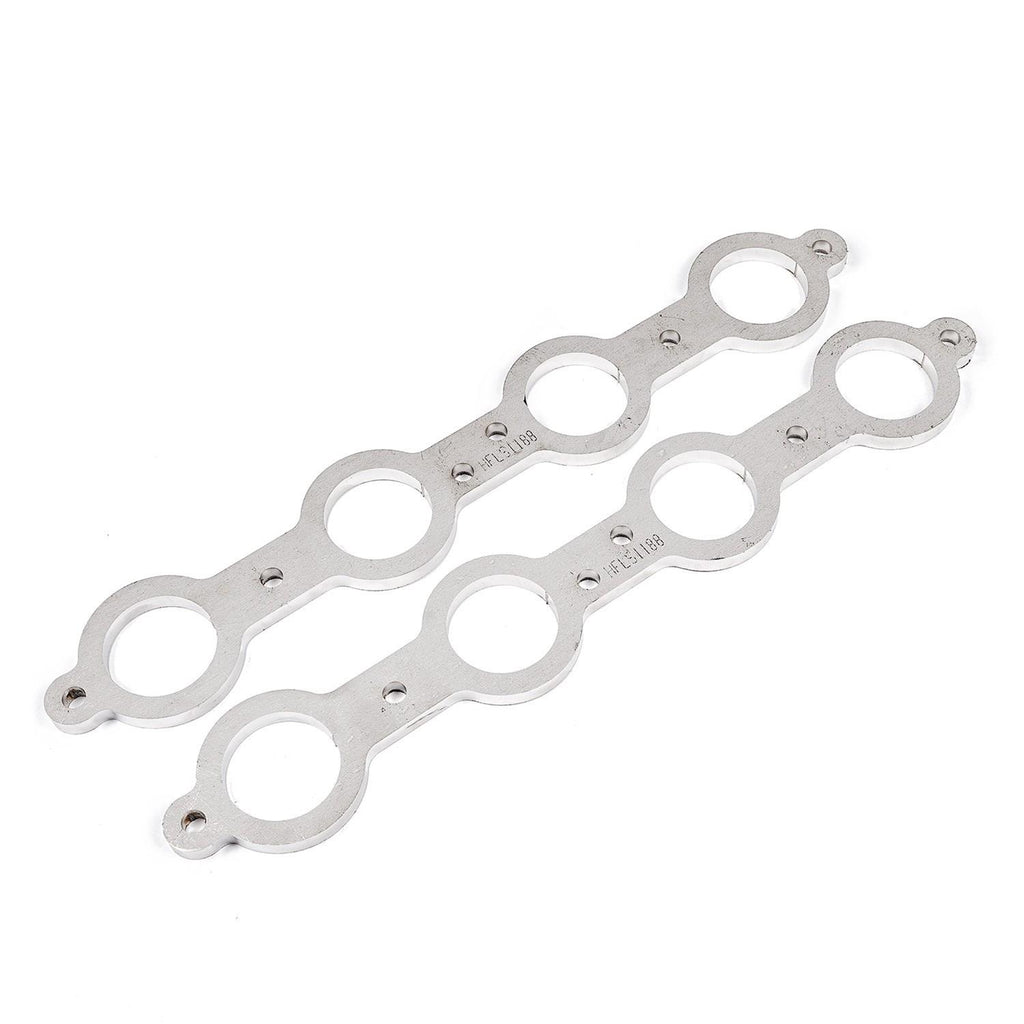 LS1/LS6 Chevrolet round port header exhaust flanges. These flanges come as a pair and are designed for 1-5/8" primaries, laser-cut from heavy-duty 3/8" thick 304 stainless steel for superior resistance to warping from high heat, and comes with a limited lifetime warranty.